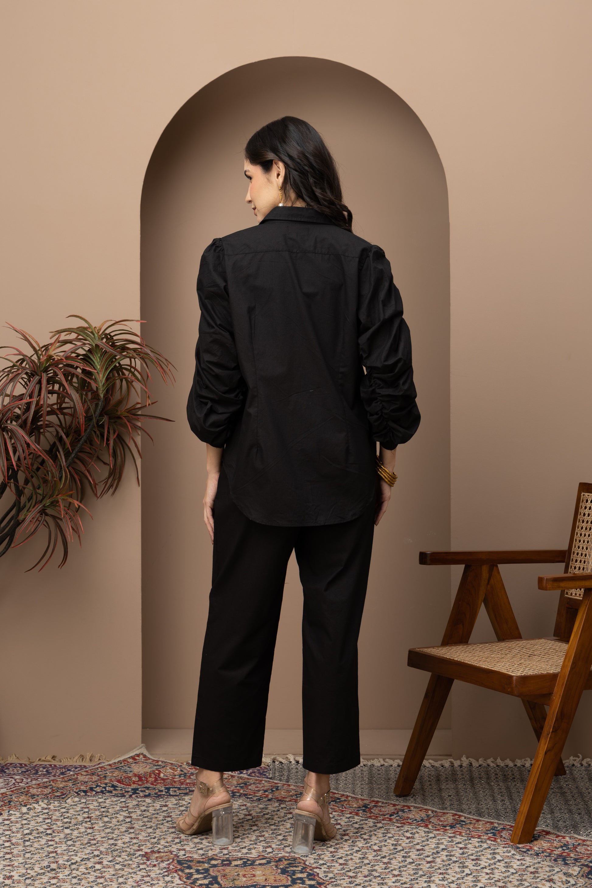 Black Cotton Shirt with Pants Coord Set (Set of 2) Stylish and Comfortable Casual Wear for Effortless Style